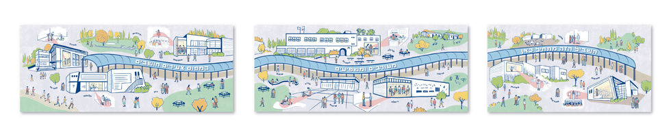 באיור רואים סצנות משמעותיות מתוך חיי היומיום של התלמידים, כאשר מתוך הסצנות יוצאות בועות מרחפות שמייצגות מבט לעתיד. דרך האיור מסופר סיפור הקמפוס כמקום שמאפשר חופש בחירה, שאיפה למצוינות ומעצב עתיד מלא משמעות עבור התלמידים.
